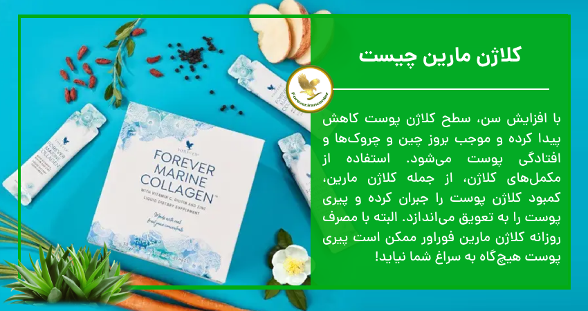 - مارین کلاژن فوراور برای پوست، مو و ناخن های شما بسیار مناسب است و موجب تقویت و سلامتی آن ها می شود.